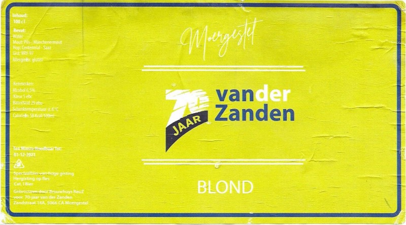 | Biernaam op etiket | 70 Jaar Van Der Zanden Blond |
