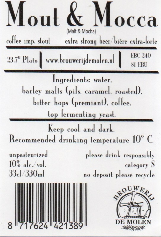 | Biernaam op etiket | Mout & Mocca Coffee Imp Stout |