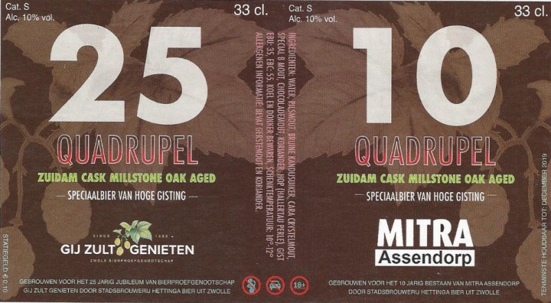 | Biernaam op etiket | 25 10 Quadrupel Zuidam Cask Millstone Oak Aged |