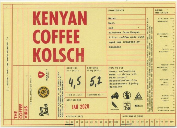 | Biernaam op etiket | Kenyan Coffee Kolsch |