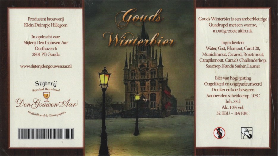 | Omschrijving | gebrouwen in opdracht van Slijterij Den Gouden Aar te Gouda |