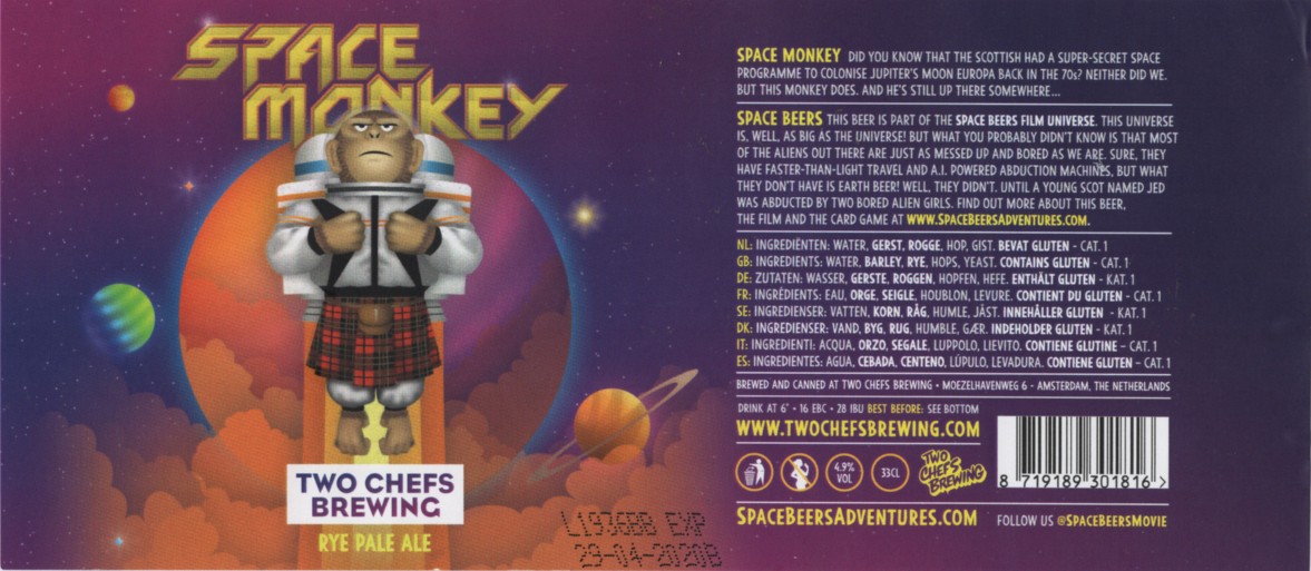 | Biernaam op etiket | Space Monkey Rye Pale Ale |