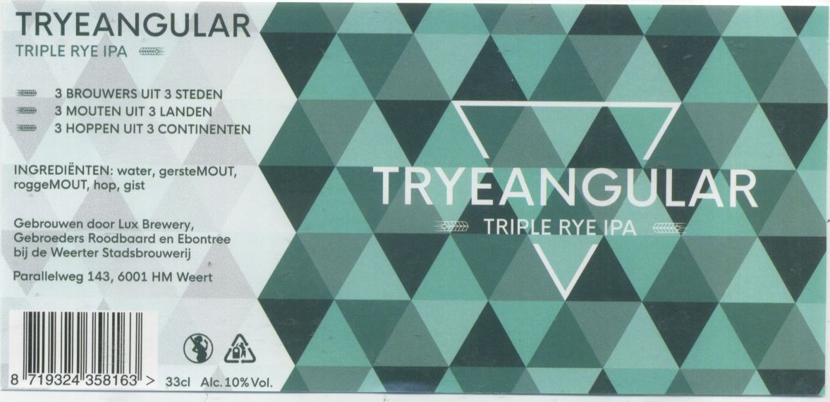 | Biernaam op etiket | Tryeangular Triple Rye IPA |