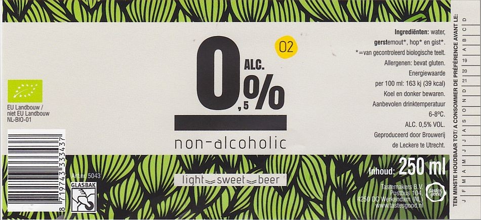 | Biernaam op etiket | 0,5% Non-alcoholic |