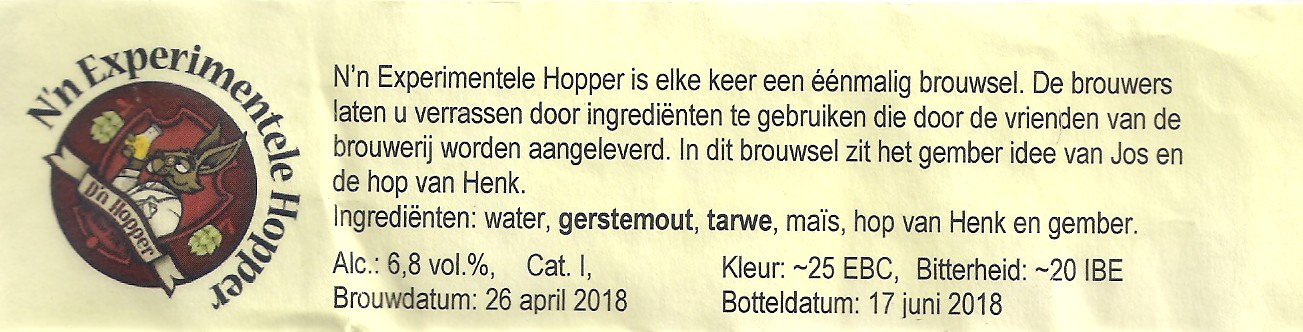 | Biernaam op etiket | N'n Experimentele Hopper |