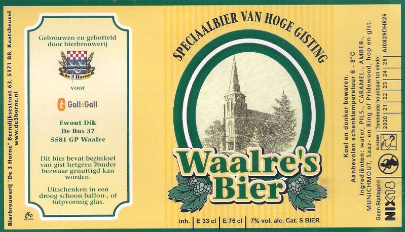 | Biernaam op etiket | Waalre's Bier |