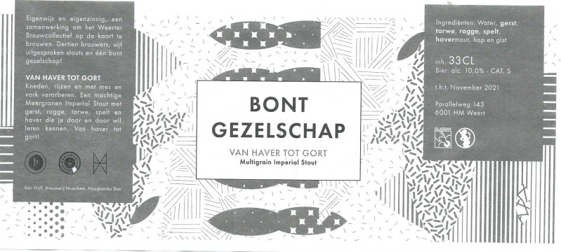 | Biernaam op etiket | Bont Gezelschap Van Haver Tot Gort Multigrain Imperial Stout |