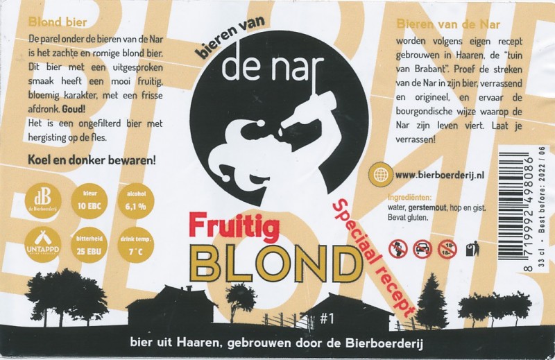 | Biernaam op etiket | De Nar Fruitig Blond |