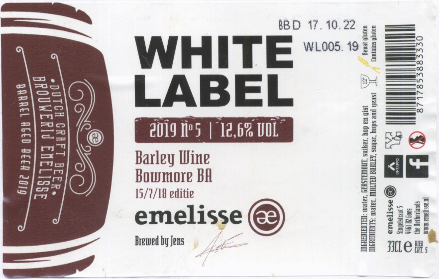 | Biernaam op etiket | White Label Barley Wine Bowmore BA |