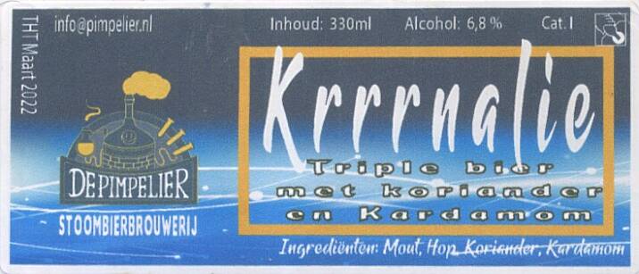 | Biernaam op etiket | Krrrnalje Triple bier |