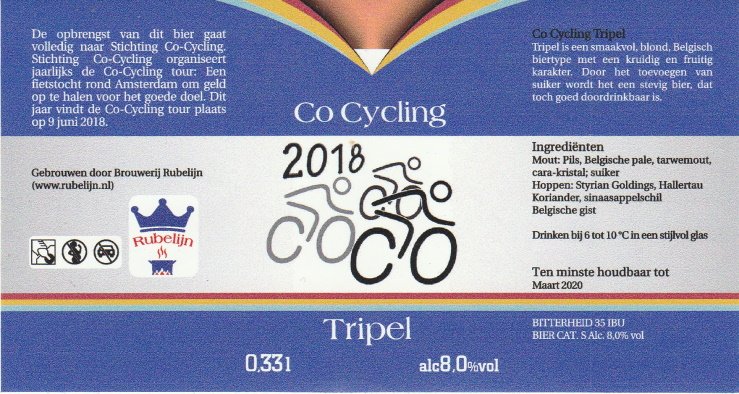 | Biernaam op etiket | Co Cycling 2018 Tripel |