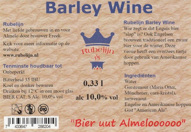 | Biernaam op etiket | Barley Wine |