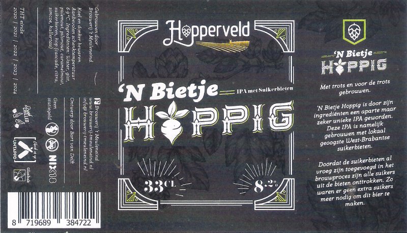 | Biernaam op etiket | 'N Bietje Hoppig |
