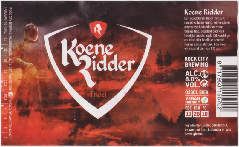 | Biernaam op etiket | Koene Ridder Tripel |