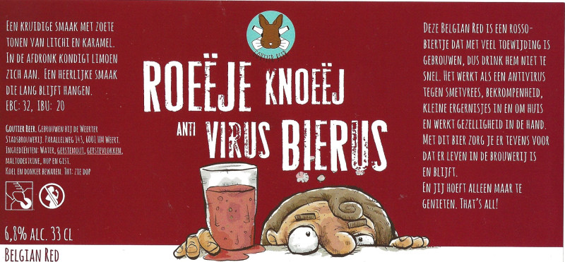 Biernaam op etiket | Roeëje Knoeëj Anti Virus Bierus |