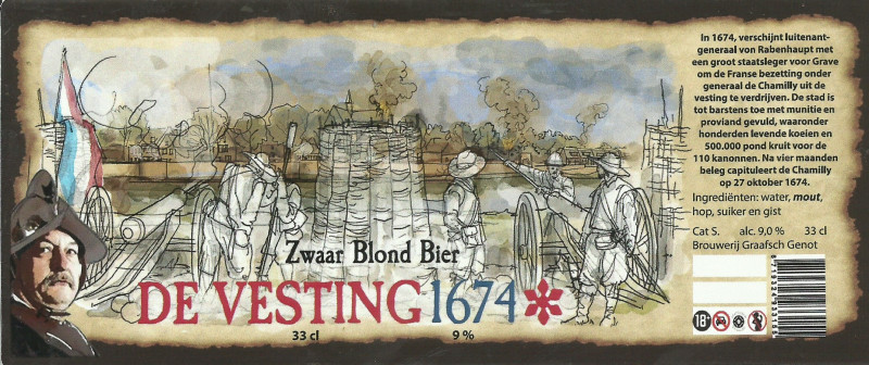 | Biernaam op etiket | De Vesting 1674 Zwaar Blond Bier |