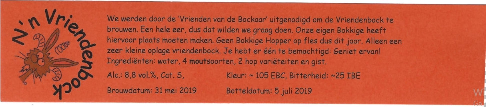 | Omschrijving | brouwdatum 31 mei 2019 botteldatum 5 juli 2019 |