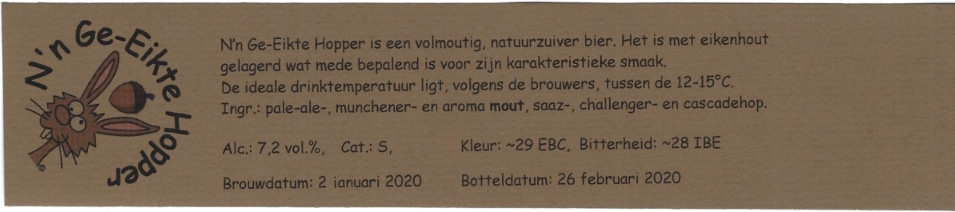 | Biernaam op etiket | N'n Ge-Eikte Hopper |