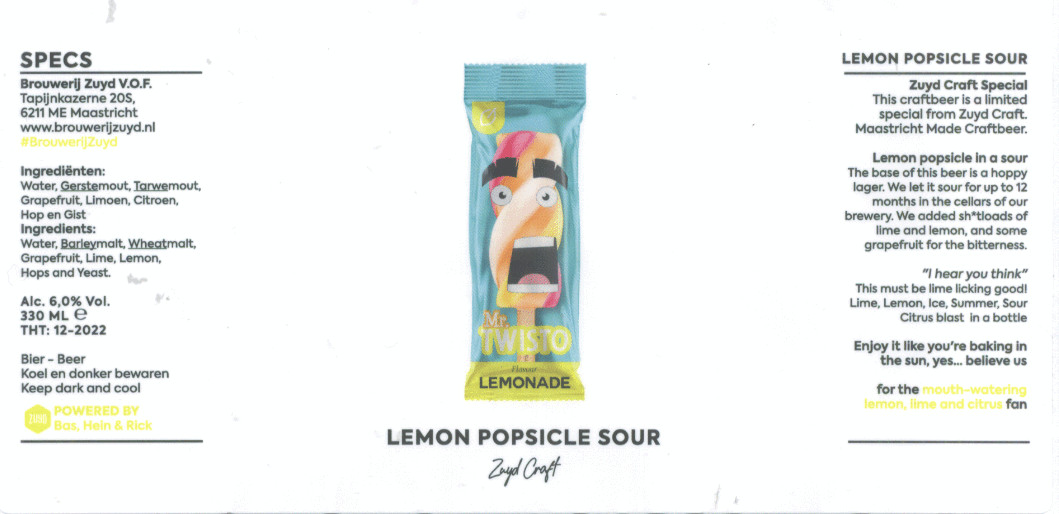 | Biernaam op etiket | Lemon Popsicle Sour |