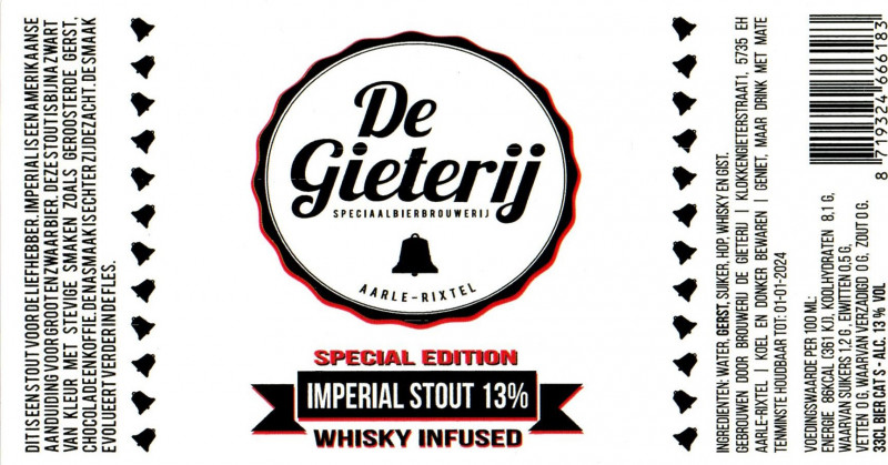 | Biernaam op etiket | Imperial Stout Whiskey Infused |
