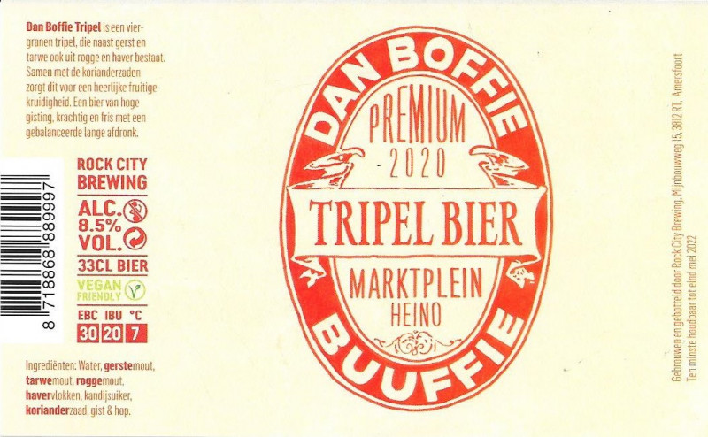 | Biernaam op etiket | Dan Boffie Tripel Bier |