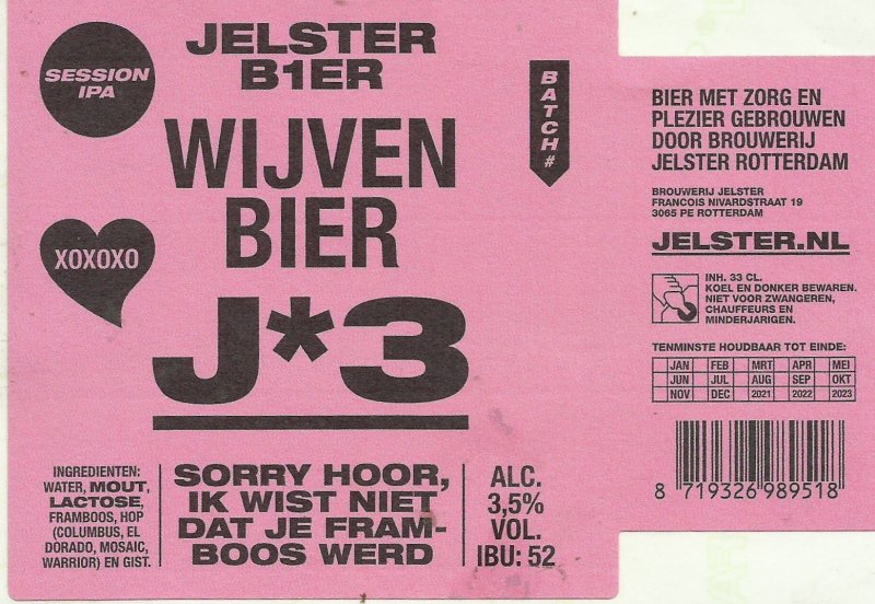 | Biernaam op etiket | Wijven Bier Session IPA J*3 |