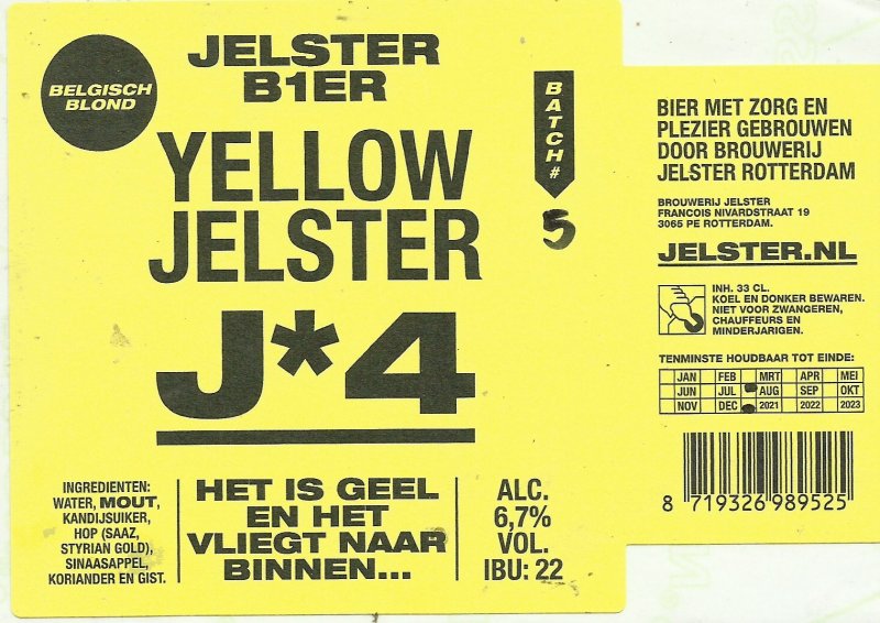 | Biernaam op etiket | Yellow Jelster Belgisch Blond J*4 |
