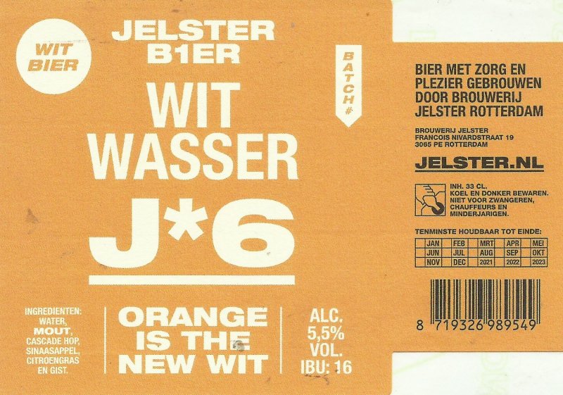| Biernaam op etiket | Wit Wasser Wit Bier J*6 |