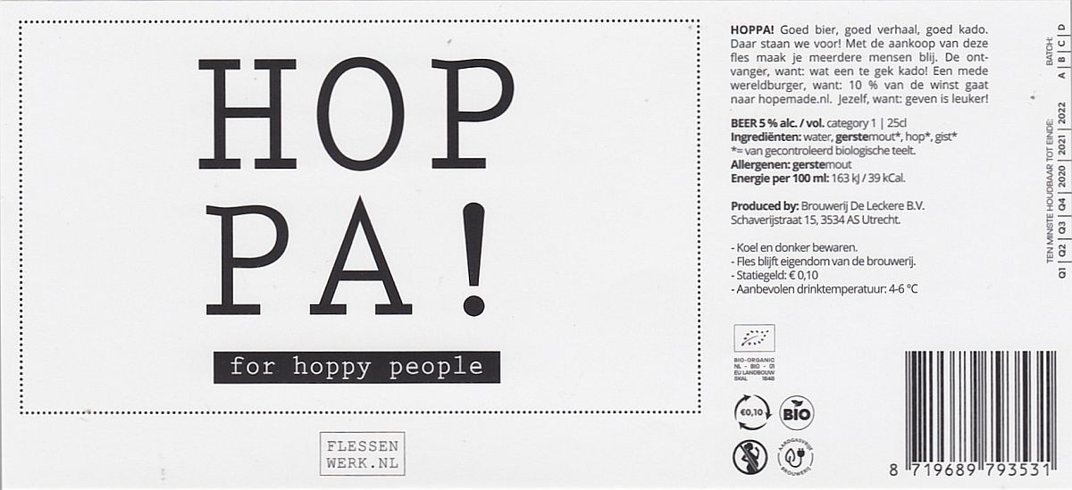 | Biernaam op etiket | HOP PA! |