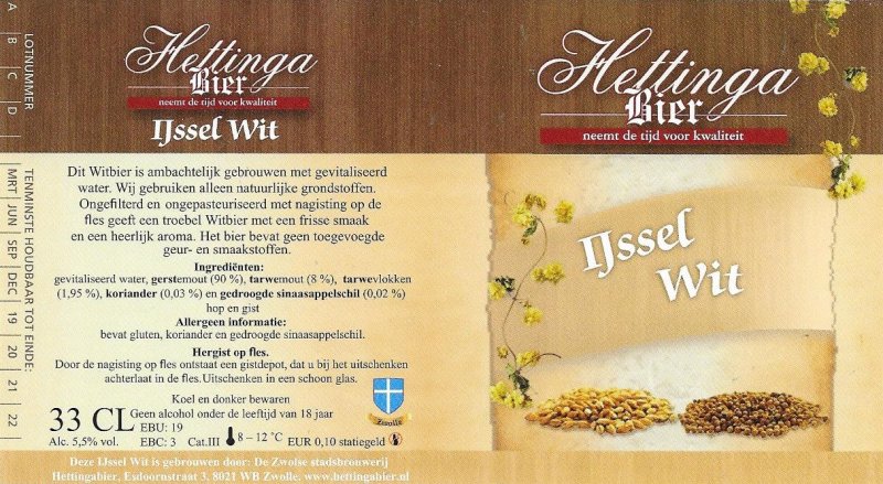 | Biernaam op etiket | Hettinga Bier IJssel Wit |
