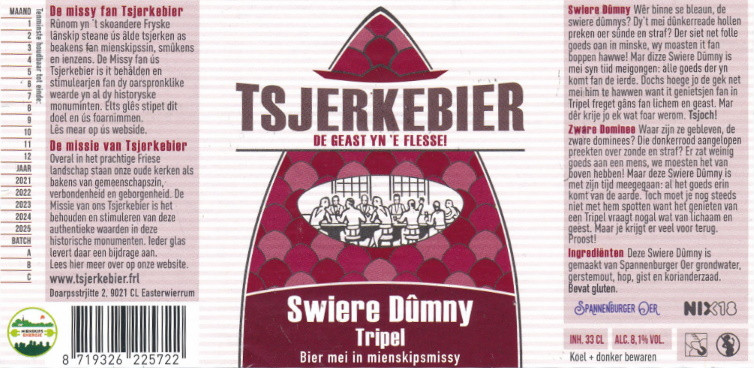 | Biernaam op etiket | Swiere Dûmny Tripel |