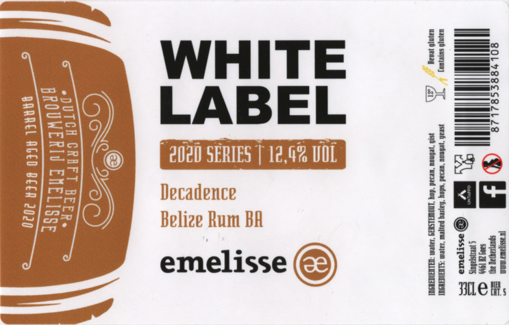 | Biernaam op etiket | White Label Decadence Belize Rum BA |