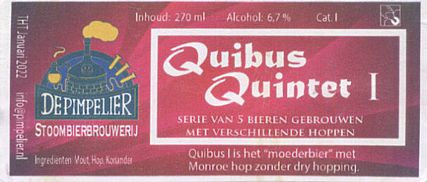 | Brouwerij | Stoombierbrouwerij De Pimpelier |