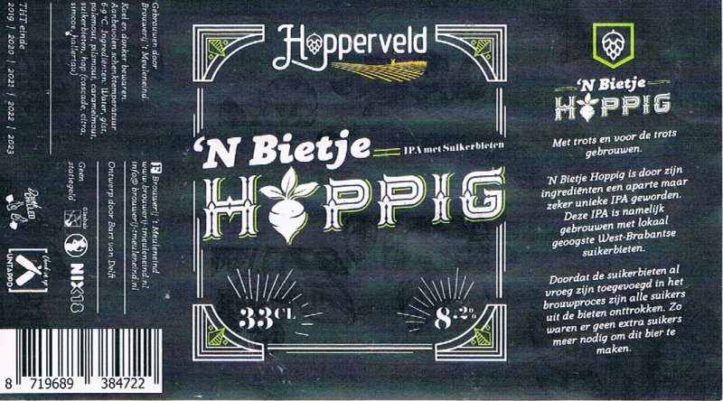 | Biernaam op etiket | 'N Bietje Hoppig |