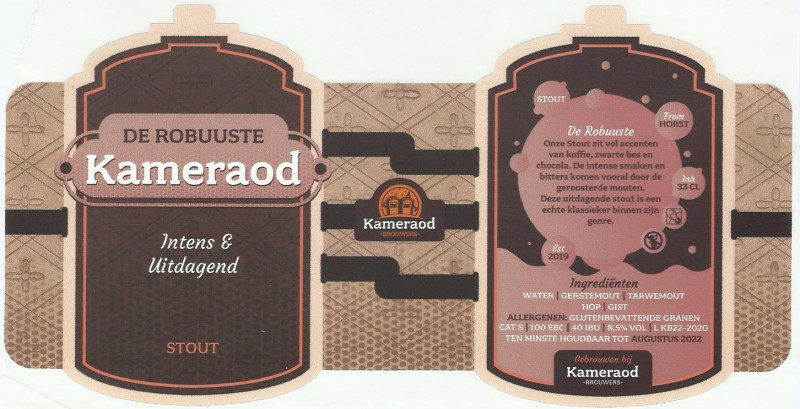 | Biernaam op etiket | De Robuuste Kameraod Stout |