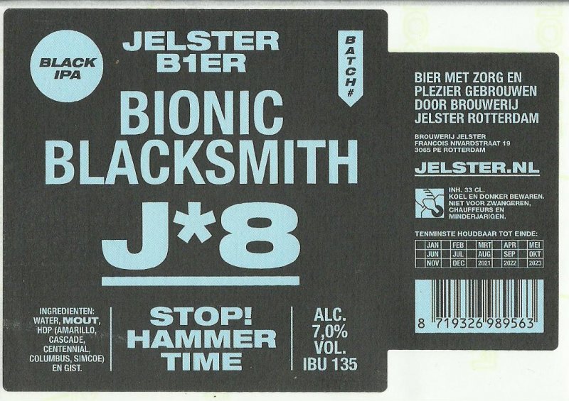 | Biernaam op etiket | Bionic Blacksmith J*8 Black IPA |