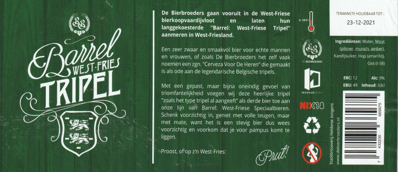 | Biernaam op etiket | Barrel West-Fries Tripel |
