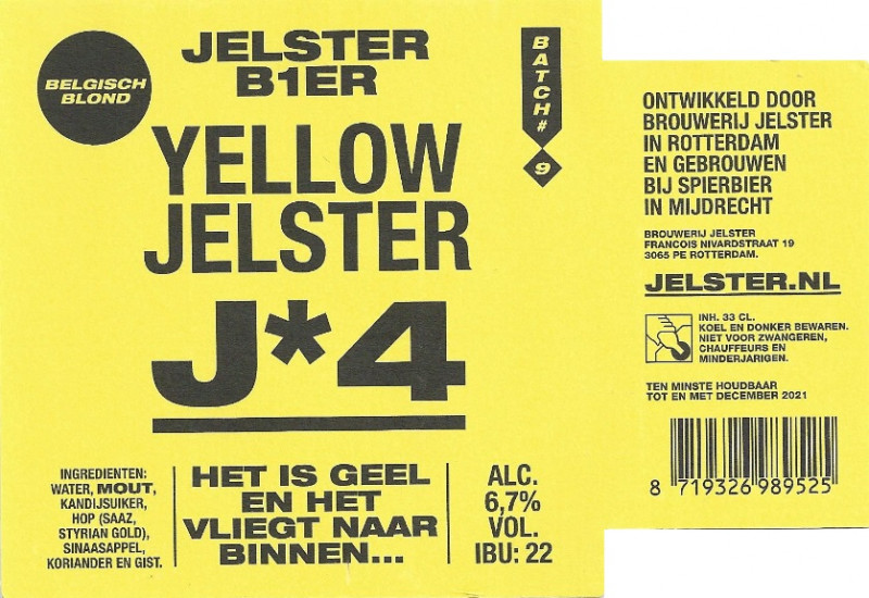 | Biernaam op etiket | Yellow Jelster Belgisch Blond J*4 |