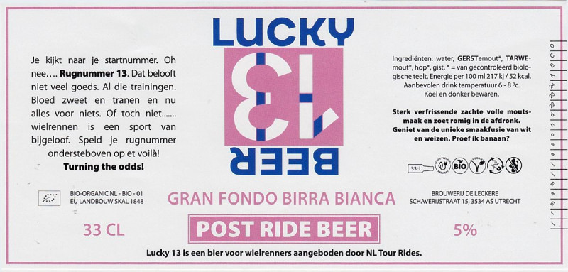 | Biernaam op etiket | Lucky 13 Beer Birra Bianca |