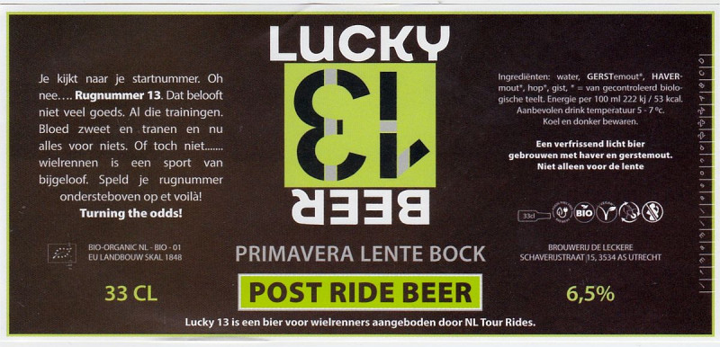 | Biernaam op etiket | Lucky 13 Beer Lente Bock |