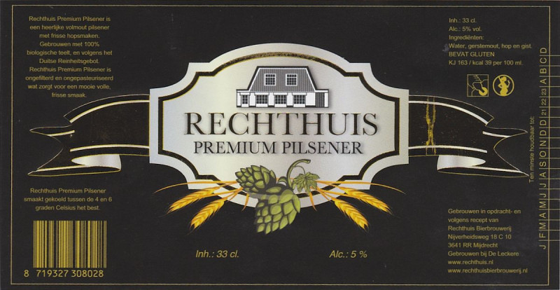 | Biernaam op etiket | Rechthuis Premium Pilsener |
