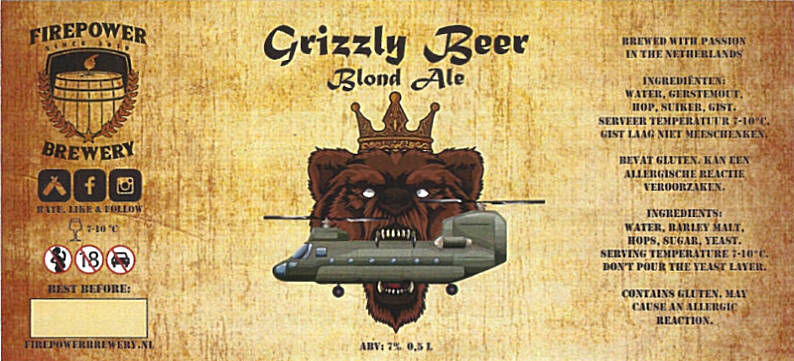 | Biernaam op etiket | Grizzly Beer Blond Ale |