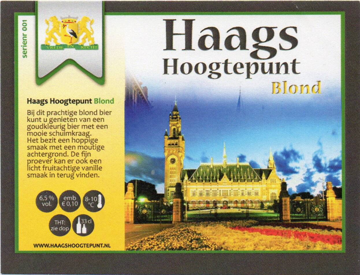 | Biernaam op etiket | Haags Hoogtepunt Blond (serienr 001) |