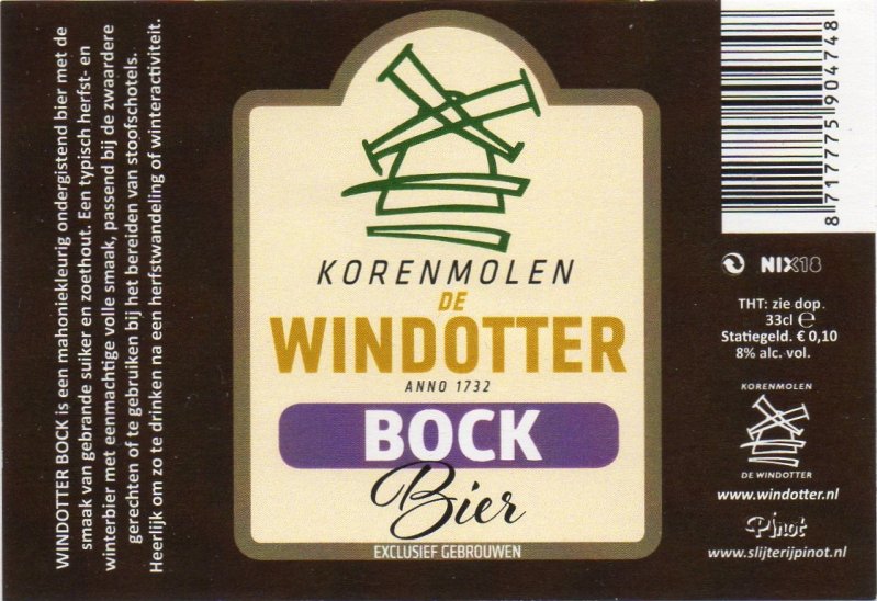 | Biernaam op etiket | Korenmolen de Windotter Bock |