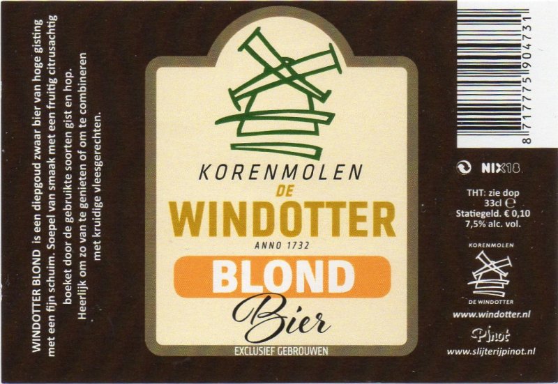 | Biernaam op etiket | Korenmolen de Windotter Blond |