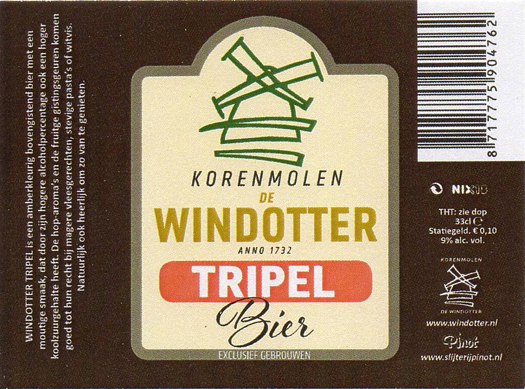 | Biernaam op etiket | Korenmolen de Windotter Tripel |
