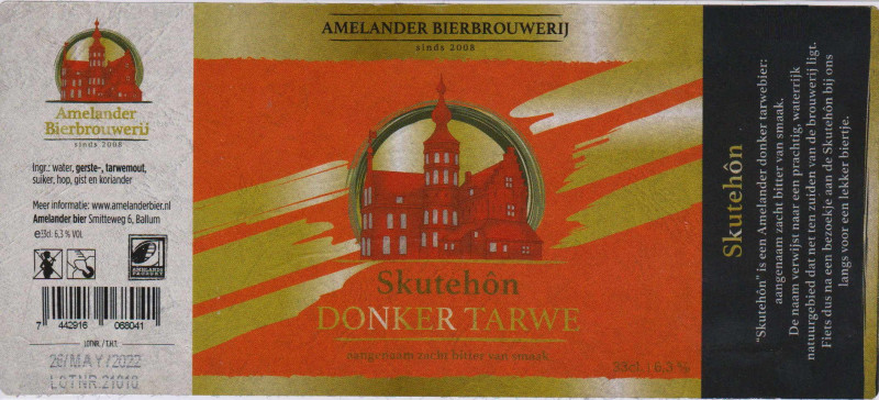 | Biernaam op etiket | Skutehôn Donker Tarwebier |