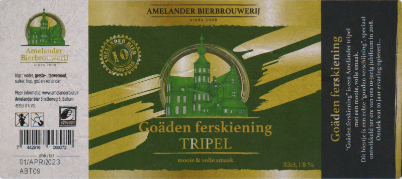 | Biernaam op etiket | Goäden Ferskiening Tripel |