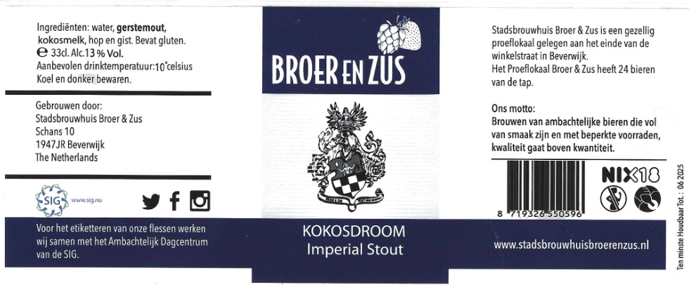 | Brouwerij | Stadsbrouwhuis Broer & Zus |