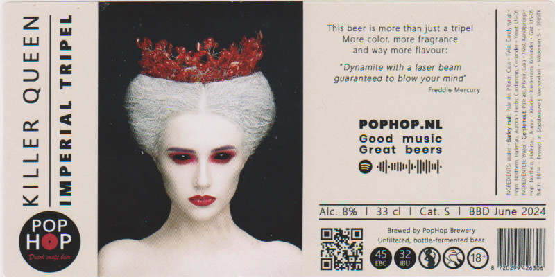 | Biernaam op etiket | Killer Queen Imperial Tripel |